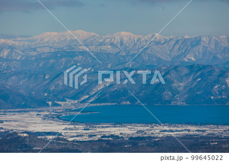 冬の蛇谷ヶ峰山頂から見る高島市マキノ町と白山