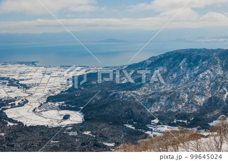 冬の蛇谷ヶ峰山頂から見る高島市と琵琶湖