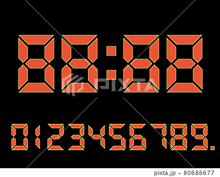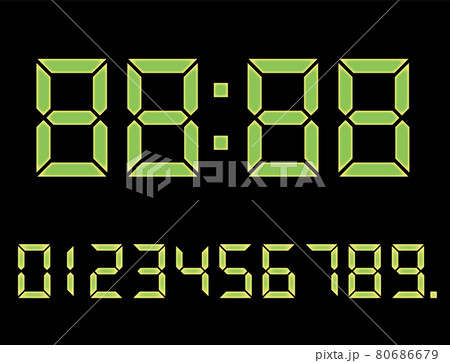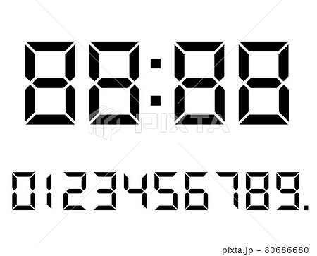 7セグメントのデジタル数字イラスト素材セット0~9時計の文字ボールド体 flディスプレイ