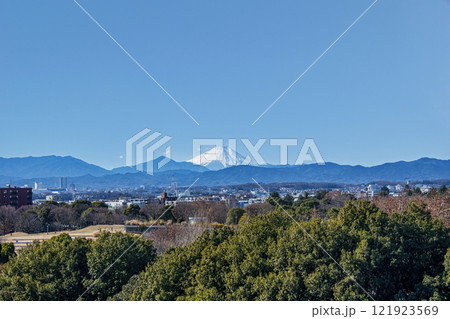 立川市 立川ステージガーデン スカイデッキの展望 富士山 丹沢山地稜線(左)