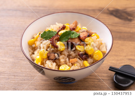 タコ飯、たこ飯。炊き込みご飯。※モロッコ産の蒸したこを使い炊飯器で炊き上げました。