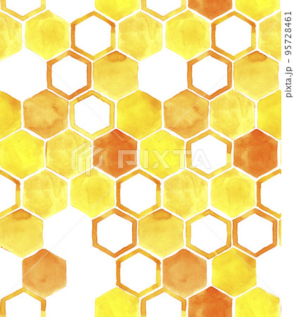 watercolor seamless pattern. yellow honeycomb. bright print of yellow, orange, honeycomb. abstract background on the theme of beekeeping, honey, farming, eco products