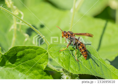 葉に止まる狩り蜂 スズメバチ科スズバチ