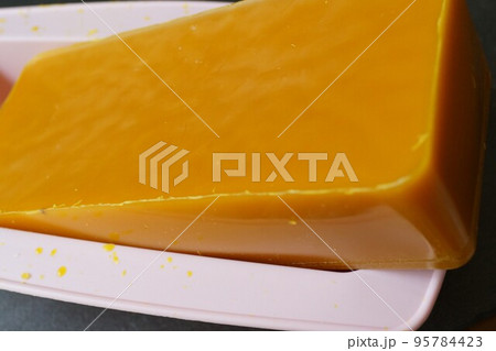 ミツロウブロックの生成 熱水より分離し半固形化したミツロウ