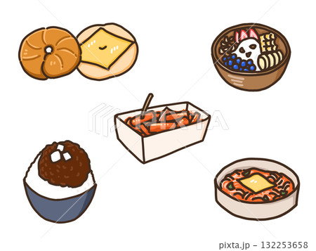 炭水化物・糖質を多く含む食べ物の手描きイラストセット(カラー)