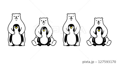 Bear vector polar bear penguin sitting hug icon cartoon character friend doodle logo teddy illustration symbol design