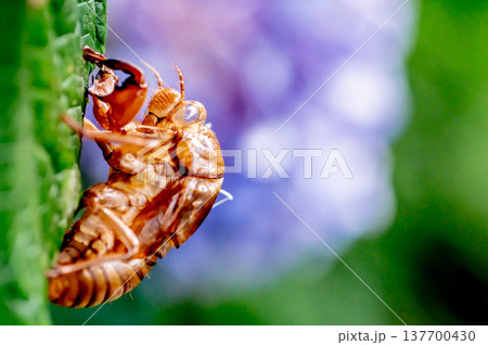 脱皮後の蝉の抜け殻の写真