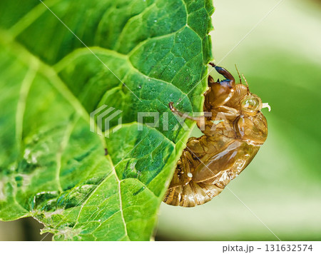 葉に止まるアブラゼミの抜け殻