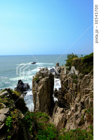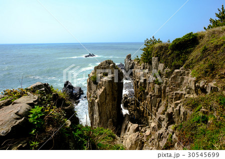 春の東尋坊の蝋燭岩