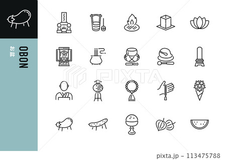 お盆アイコン・イラストセット 線・ライン・塗りパスつき