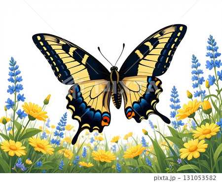 Colorful Butterflies Among Vibrant Blossoms in a Natural Landscape