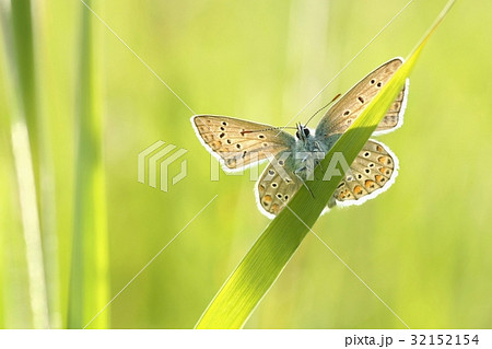 Butterfly (Plebejus argus) on a blade of grass