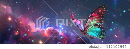 A vibrant purple butterfly, a vital pollinator and beautiful arthropod, gracefully soars in the sky among pink and violet petals