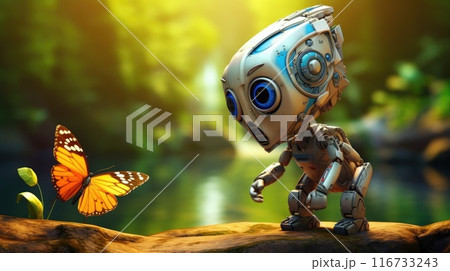 Beautiful big wild butterfly looking forward is shown in full length, Ai generated