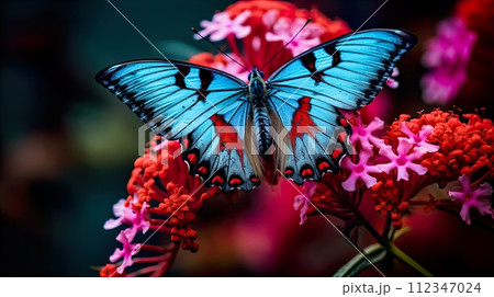 Butterfly on flowers with a soft-focus background.Nature and wildlife photography, educational materials.AI Generated.