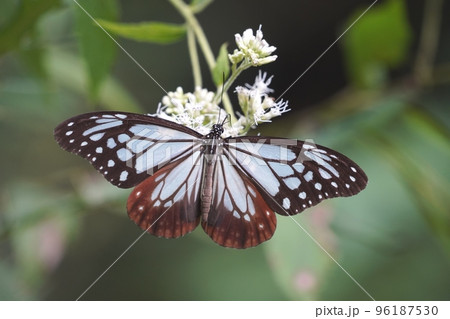 白い花にとまる蝶々、リュウキュウアサギマダラ(Ideopsis similis)