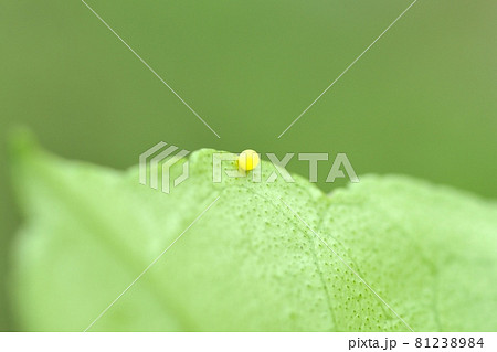 ナミアゲハの孵化-卵の殻を食べているところ(キンカン)