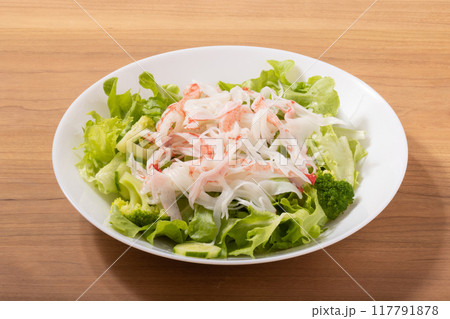 カニ風味サラダ カニかまぼこ 野菜 明るい背景