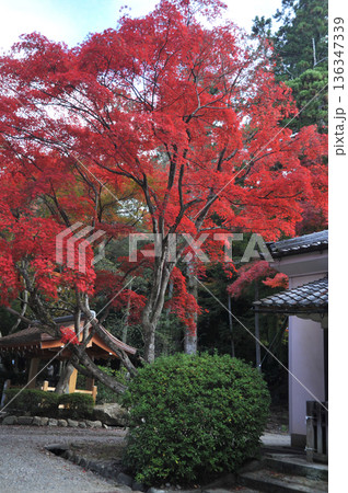 滋賀県多賀町 秋の胡宮神社の血染めのもみじと手水舎