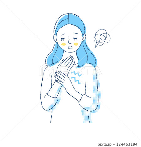 手の痺れ・震えに戸惑う女性のイラスト(更年期障害・手根管症候群・リウマチ)