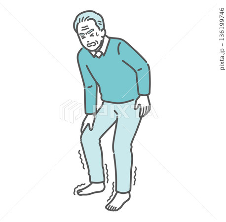 足の痺れ・痛みに耐える高齢男性のイラスト(脊柱管狭窄症・糖尿病・坐骨神経痛)