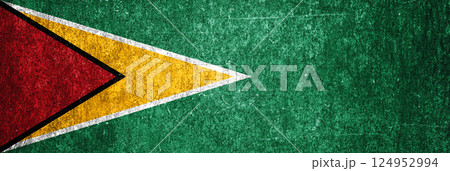 Guyana state flag on a metal surface. Banner of dirty grunge Guyana flag.