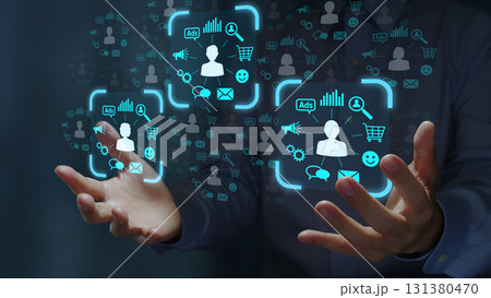 顧客関係管理CRMシステム。ターゲット顧客のデータ分析とパーソナライズされたマーケティングオートメー