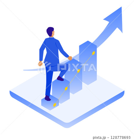 成長グラフを登るビジネスマンのイラスト(ステップアップ・成功への道)