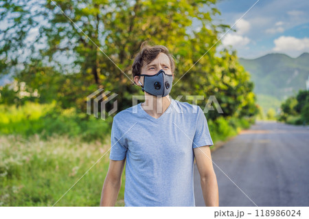Runner wearing medical mask, Coronavirus pandemic Covid-19. Sport, Active life in quarantine surgical sterilizing face mask protection. Outdoor run on athletics track in Corona Outbreak
