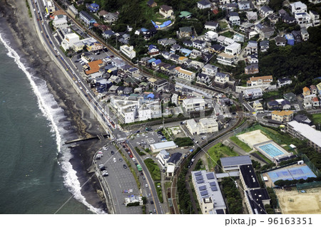 江ノ電の七里ヶ浜駅付近を空撮