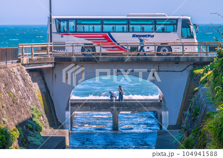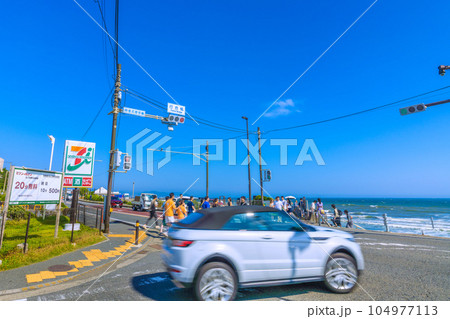 日本の鎌倉都市景観 江ノ島電鉄七里ヶ浜駅からすぐの行合橋や海岸…。訪日客らにも人気スポットでもある