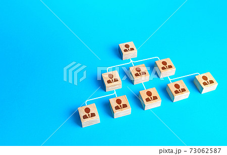 Traditional schematic visualization of the company structure from blocks with people. Business personnel management. Command and subordination. Effective optimization of company hierarchical system