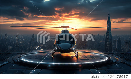 Helicopter on Tarmac at Sunset