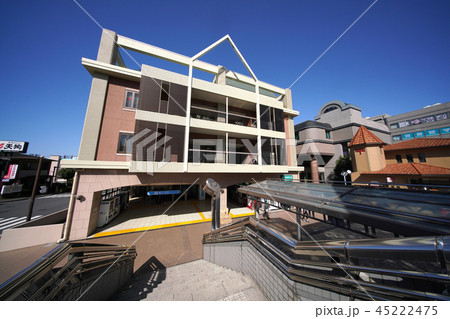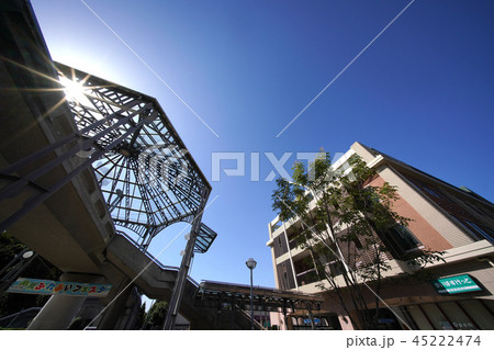 日本の横浜都市景観 地下鉄 中川駅前の街並みなどを望む