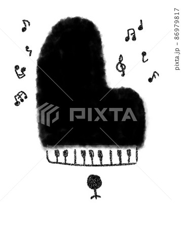 クレヨンタッチ手描きのグランドピアノ_黒色