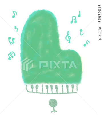 クレヨンタッチ手描きのグランドピアノ_緑色