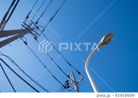 電柱に取り付けた街路灯 防犯灯