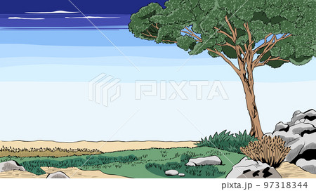 和風イメージ 木のある道 背景