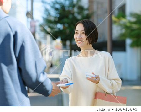 ティッシュ配りをする女性
