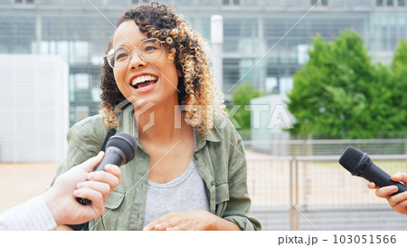 インタビューを受ける外国人女性