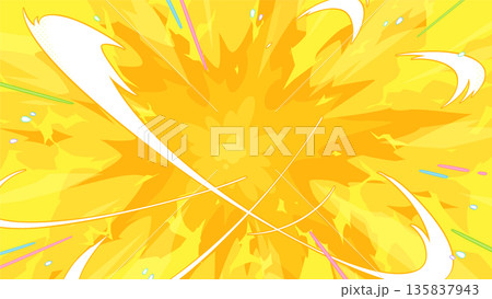 爆発のエフェクトが広がる背景イラスト_黄色_16:9