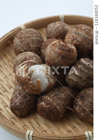 竹笊に入れた茹でた里芋