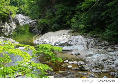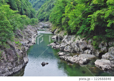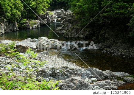 緑深い谷間を流れる初夏の表匹見峡 Ver1