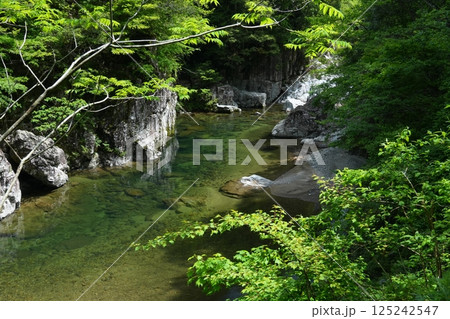 新緑映える初夏の表匹見峡の清流(益田市)