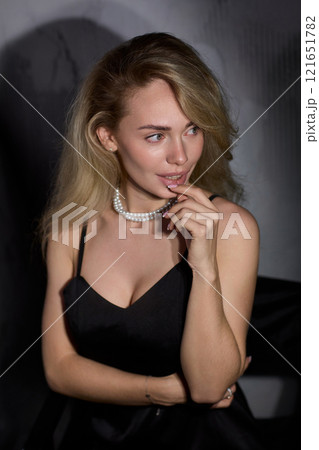 An Elegant Woman in a Beautiful Black Dress Posing Elegantly with Grace and Charm