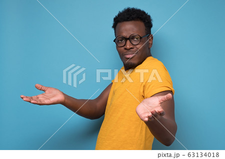 Unhappy man in glasses making arms out asking what is the problem who cares