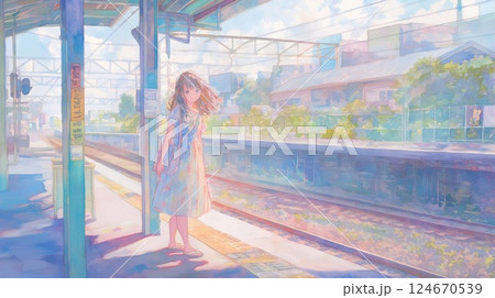 放課後の駅で静かに立つ女子高生の美しい後ろ姿