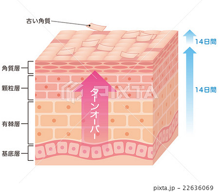上向きの矢印 肌のターンオーバーの断面図