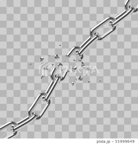 Steel chain with one link from paper clip. Weak link, concept. 3D rendering