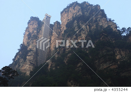 張家界百龍エレベーターと岩峰